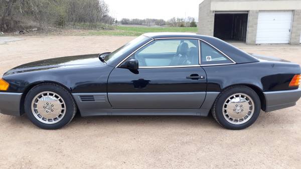 Key specs and tech include the R129 platform; 3.0-liter 24-valve dual overhead cam (DOHC) inline 6-cylinder engine (230 HP); power hard top and soft top; premium JVC stereo with Bluetooth-Sirius-USB integration; passive restraint (airbag) safety system, power steering, power anti-lock brakes, power windows-seats-mirrors.