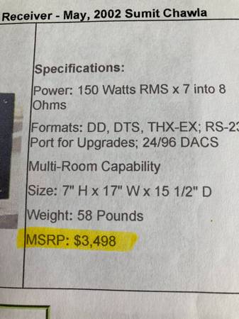 B&K AVR307 Surround Sound Receiver, made in the USA. This is obviously a high-end receiver and is in like-new condition. 150 Watts RMS x 7 into 8 Ohms. Multi-room capability. Formats: DD, DTS, THX-EX; RS-232. Port for upgrades: 24/96 DACS. This beautiful masterpiece weighs approx. 60 lbs! When new, the MSRP was $4,000. It was $3,495, but the $500 upgrade was purchased (this converted the unit to an AVR317). Cash only. Must pick up. No other ad incentives or scams. $799/Best Offer...