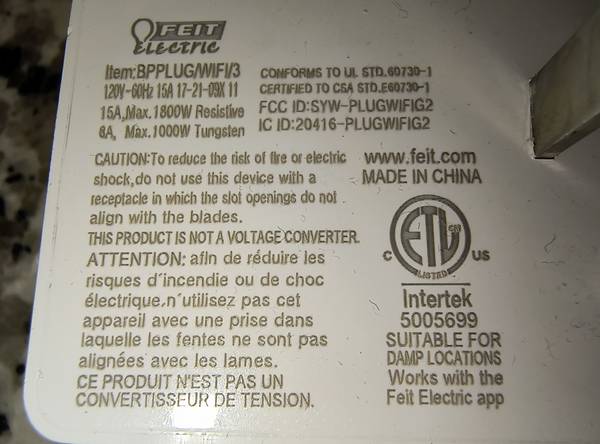 Feit Electric BPPLUG / WIFI / 3 WiFi Smart Plug White is a smart plug designed for indoor use in the United States. It features wireless connectivity, app control, and is compatible with Google Home, Amazon Alexa, and Siri. With a maximum input current of 11-15 A and an output voltage of 120 V, this plug allows for remote control of devices with a maximum wattage of 0-50 W.