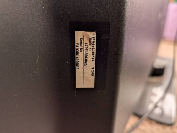 46" Philips LCD TV. Has sat unused and we are finally cleaning house. Works great. Is not a smart TV,bso you will need something to hook up to it to watch Hulu/Amazon/Netflix, etc. Has a small...