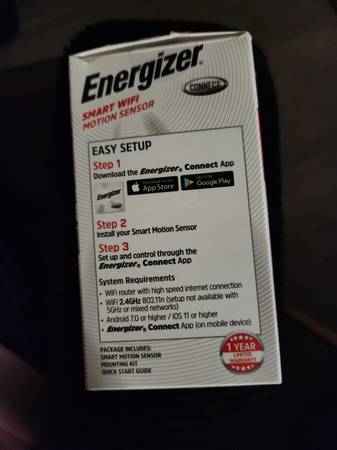 Energizer Connect Smart Motion Sensor, No Hub Required Works with Alexa, Google, or Siri. Full details are available on-line. MSRP $29.99 If you are interested please call or text me at: Six-1-two...