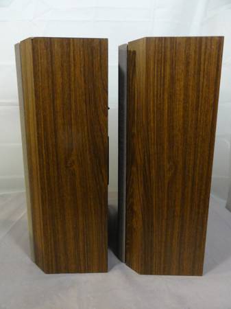 ITEM DESCRIPTION ============= Excellent used condition. Tested--all drivers working. One grill is missing the badge. 16" x 11.75" x 5.7" 10.5 lbs Finish: teak vinyl Tweeter: 0.5" polycarbonate dome...