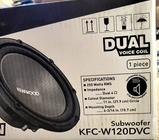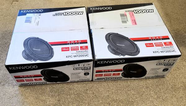 Selling a pair of brand new in factory sealed boxes, Kenwood KFC-W120DVC 12 inch subwoofers. They are dual 4 ohm voice coils and pretty hard to come by. You can wire them parallel down to 1 ohm or series to 4 ohm, or a combination. Very versatile. You can see by the stickers on the boxes they are straight from Best Buy. Never got around to opening and using them. Selling the pair for $160 cash firm (originally $140/ea). No trades. No best offers. No replies to "Are they still available." I've also got a pair of the single 4 ohm voice coils (wire parallel down to 2 ohms) KFC-W120SVC that I'll take $120 for the pair (originally $120/ea).