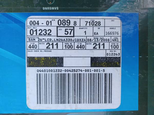 Samsung LN26A330 26" LCD HDTV, in good working condition, comes in manufacturer box with the manual and remote control. Text or Email LED TV , LCD TV