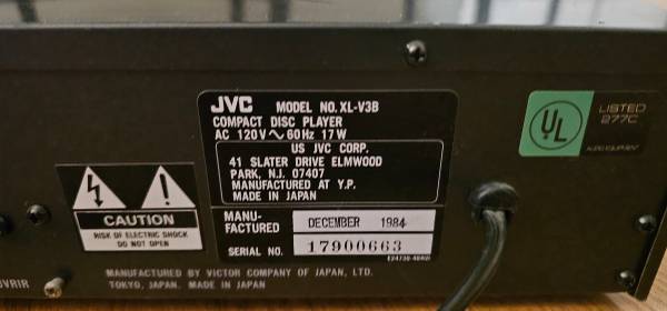 VICTOR/JVC XL-V3 SINGLE DISC- HIGH QUALITY CD PLAYER. VERY HEAVY- SOLID BUILT. REPEAT, RANDOM ACCESS PROGRAM. MADE IN JAPAN. YEAR 1984. GREAT SOUND!