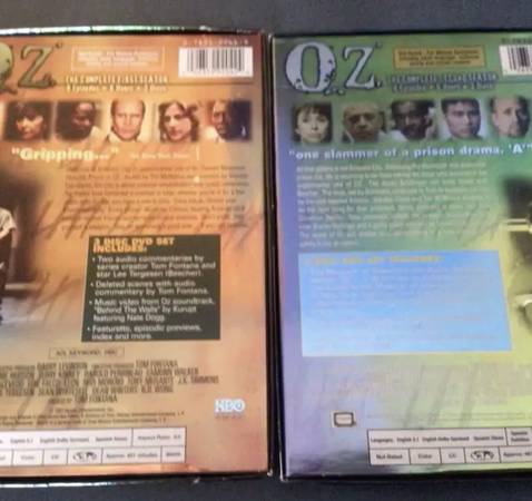 Here are seasons 1 and 2 of the prison drama OZ. The DVDs are complete and in excellent condition. These DVDs also include cast/crew bios, episode recaps, commentaries, more.
