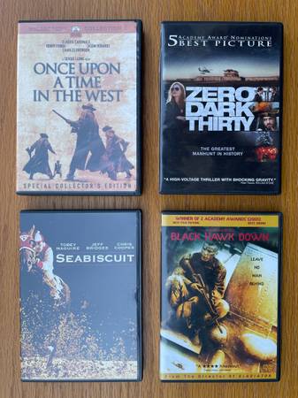 Once Upon a Time in the West $2 2-DVD set (disc two special features) Zero Dark Thirty $1 Seabiscuit $1 Black Hawk Down $1 all DVDs in like-new condition