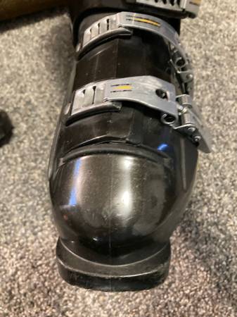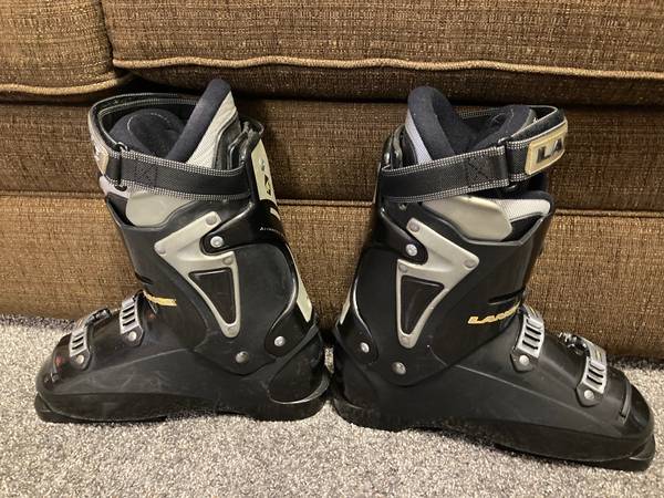 I am selling a gently used pair of ski boots. I don’t know if they are men’s or women’s ski boots, but my wife is the one that wore these. The brand is Lange. The size is 9. The color is black/dark grey (I can’t tell). The boots do have a few scuffs as can be seen in the pictures. There are no deep gouges. The bottom of the boots are in great shape with minimal wear. Here are a few specs I found on the net. The G-Force design is a perfect complement to super-sidecut skis. A medium volume boot with regular width, the GX7 has a softer forward flex and is shorter than most boots. This allows you to carve turns on parabolic skis. Women's specific anatomic liner with a soft gel tongue adds all day comfort. Features include: 3-Flex insert. Lady Anatomic Comfort Design lining. Micrometric buckles. G-Force asymmetric upper. Slow Memory arch support.