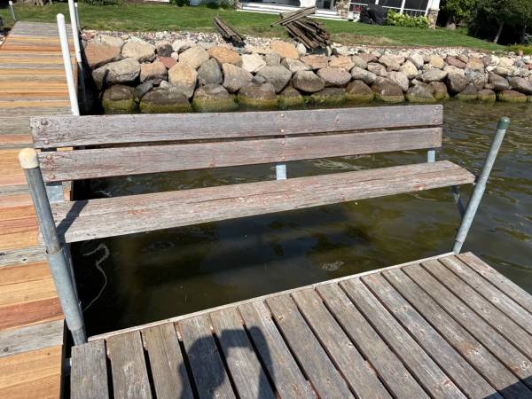 Wood Dock bench. Good condition. Fits standard 8 foot section. Tonka dock. Cedar dock. Boat House.