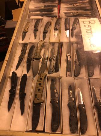 HELLO IM SELLING MY BENCHMADE KNIVES MOST $100.00 A FEW $125.00 PLEASE CALL MITCH THE KNIVE GUY THANK YOU