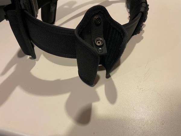 For sale is a Bianchi nylon duty belt. I have used this very, very little. It is in near new condition. There is no ware whatsoever on the belt or accessories. Comes with a flashlight holder that would hold a streamlight flashlight. Comes with a mini mag light holder. Comes with a leather medical glove pouch. Comes with a key ring holder. Comes with 4 belt loop retainers. I have a 34 inch waist and I can wear this on the outside of a regular belt. I no longer have a use for it. I am firm at asking for $80 cash. I do not take cash apps. Emails only. Located in Bloomington.