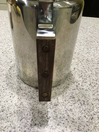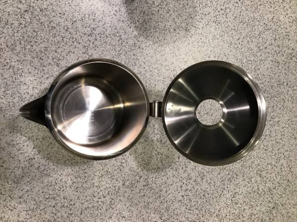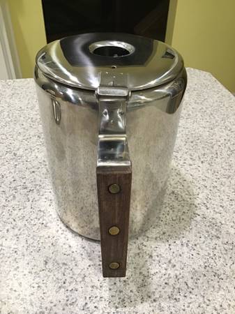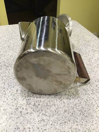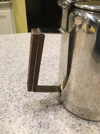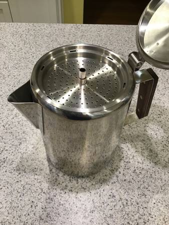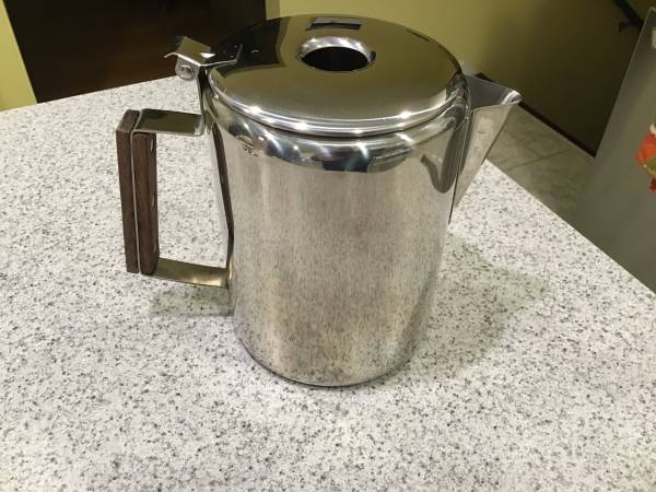 I take pride in caring for my gear and have always handled it carefully and cleaned it throughly and immediately after every use. It is in very good condition. There are no dents, gouges, breaks or deformities of any kind. The finish is in very good condition, with very minor scratching and minor discoloration (discoloration primarily on the outside bottom, and very slight discoloration of the glass percolator viewing top piece), and is showing only minimal signs of normal usage. The handle is in very good condition, with no cracking or other damage to wood. All internal parts and the glass top are in great shape, as well. It was never abused in any way, and is functioning perfectly. Sold as pictured, and includes the unbleached filter discs shown in the pictures (I'm not sure how many of the filters there are, but I would guess at least 100 or more -- the stack of filters is at least 2" tall.)