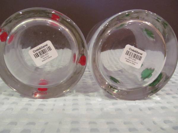 Set of 2 NEW Double Old Fashioned glasses with fun Holiday themes. Hand Blown glass. Measure 4" H x approx. 3.25"W and hold 15 oz. RETIRED designs.
