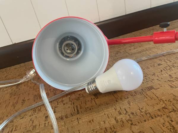 Add a pop of color and functionality to your living space or study area with this Desk Task Table Lamp. Its vibrant red finish brings a playful vibe to any room, brightening up the atmosphere. The adjustable shade lets you direct the light precisely where it's needed, ensuring optimal illumination for homework or reading sessions. Crafted from durable metal, this lamp is built to last. Please note that one 60-Watt bulb is required (LED bulb in pictures included). With dimensions of 9 in. x 7 in. x 21 in., it's the perfect size for any desk or table. Brighten up your space with style and practicality!