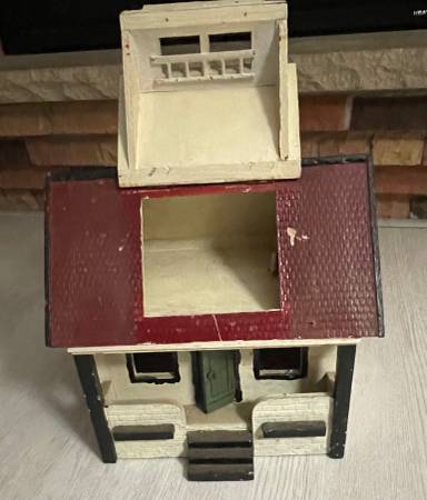 Rare Vintage German Gottschalk Red Roof Dollhouse Has weathered time well - good condition Well made, wood, original interior Marked on bottom - Made in Germany with serial # 12” L 12” H 8” W See...