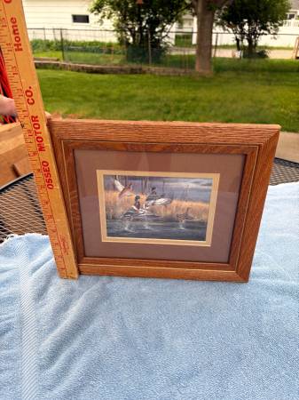 Bring the beauty of nature indoors with this striking framed wildlife art print featuring mallard ducks in flight over a marshland. The artwork is rich in detail and color, capturing a serene moment in the wild — perfect for duck hunters, nature lovers, or anyone who appreciates rustic decor.