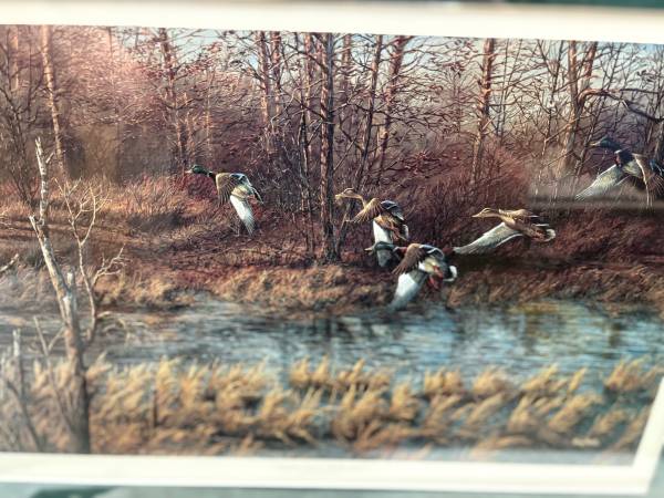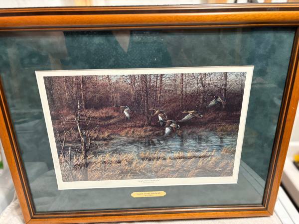 Own a stunning piece by renowned wildlife artist Terry Redlin with this beautifully framed print titled “Apple River Mallards.” Known for his vivid scenes of nature and Americana, Redlin’s work is highly collectible and perfect for adding a rustic, peaceful feel to any space.