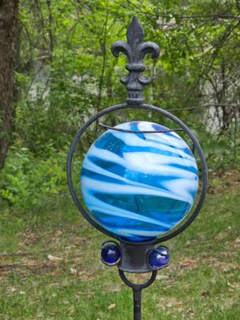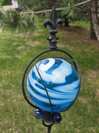 For sale is a gorgeous glass ball stake. Perfect for the garden. Excellent shape. Happy blue and white tones. Solid steel frame. 5'5" in length. $25 cash. Pick up in Plymouth. Please send your Ph #....
