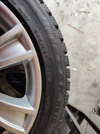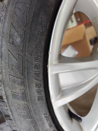 Blizzak snow tires and rims for Mercedes. Came off of a MB SUV GLC350. Will fit most MB with 17” rims and appropriate length log nuts. Good tread; about 8/32 inch. Used two seasons. 245/45R17 $800 obo