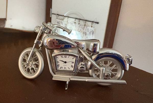 This eye-catching miniature motorcycle clock is built for more than just looks—it’s functional, with a working timepiece featuring Roman numerals on the face. Though small in size, it’s solid and heavy, giving it a high-quality feel.