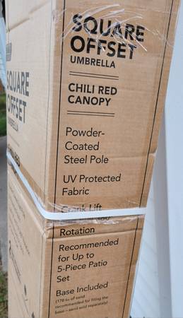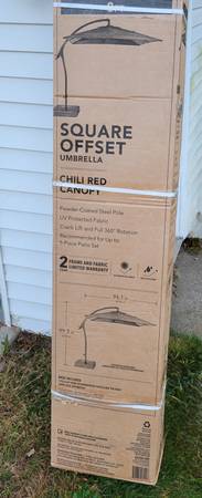 I'm selling a brand new 8 foot offset cantilever patio umbrella. This was over $540 after tax and it has never been taken out of the box. Sale is cash only. It can be picked up near the Crystal...