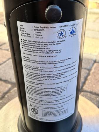 Hello - Looking to sell a used Table Top Patio Heater. It hasn't been used for a few years but it worked great last time I checked. It takes the non-fillable camping propone containers but you can...