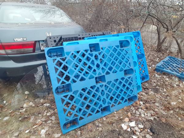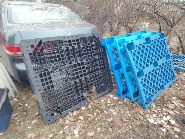 5 plastic pallets $19 EACH 47" x 39" x 6", lightweight yet sturdy, call/text