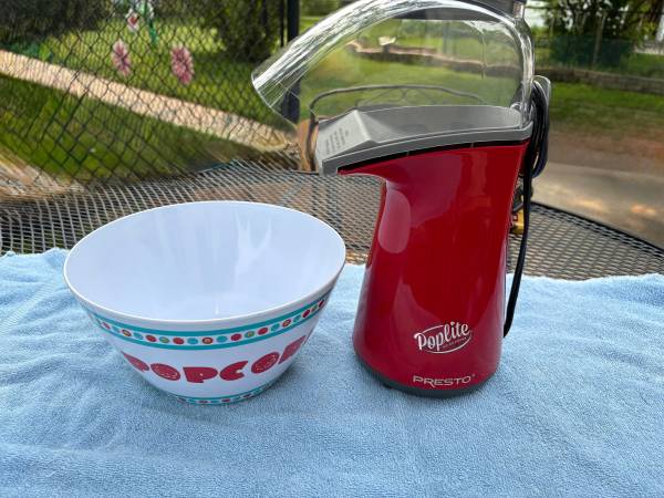 Make memories and popcorn with this like-new Presto PopLite Hot Air Popper! It’s fast, fun, and a huge hit with kids and grandkids alike—just plug it in, pour in the kernels, and watch the magic pop!