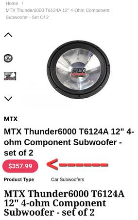 *Two* MTX 12" Thunder 6000 500W subwoofers