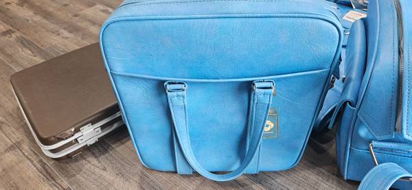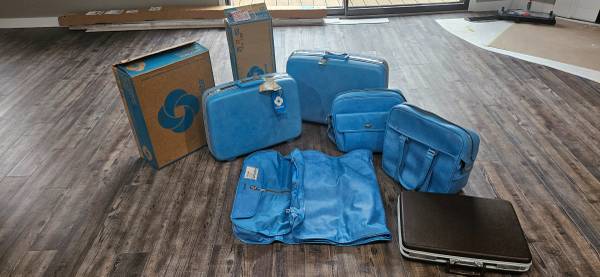 I have a 5-piece blue Samsonite luggage set which includes (2) hardcase suitcases, (2) handbags/day bags, and (1) Dress-pak. Listing also includes the brown briefcase. The smaller suitcase comes with the box and the tags & keys still attached. The Dress-Pak also comes with the box and the tags & keys still attached. The larger suitcase comes with a key inside. One of the handbags/day bags comes with a key. The briefcase does not include a key.