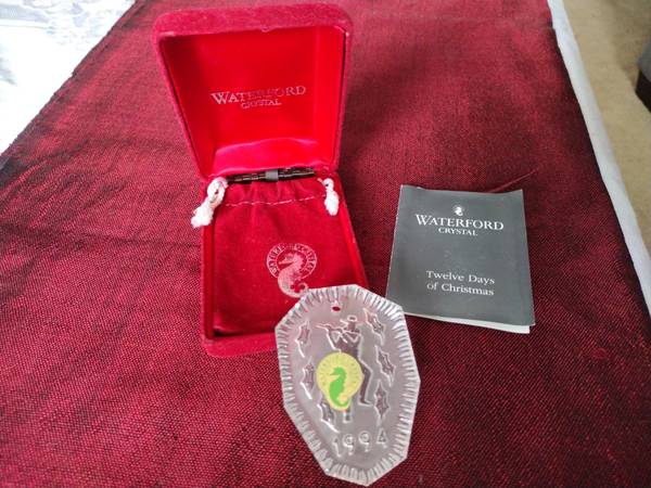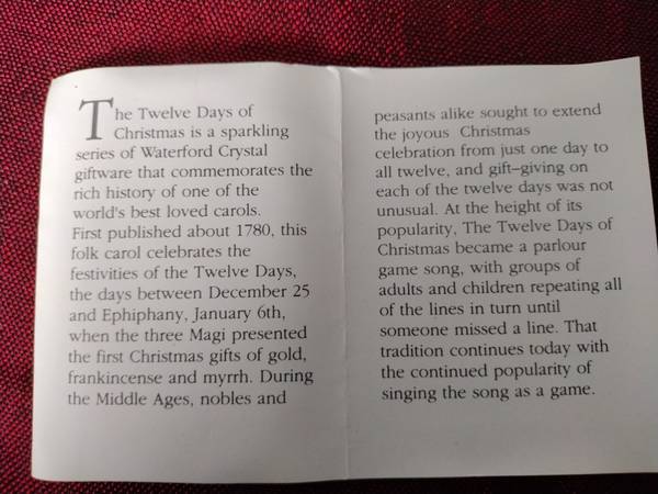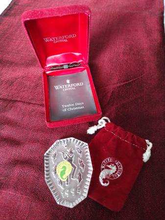 Vintage discontinued Waterford Crystal 12 days of Christmas Series 1994 eleven pipers piping tree ornament. Acid etched design with Waterford sticker still attached. Includes original Waterford box with keepsake bag and brochure.