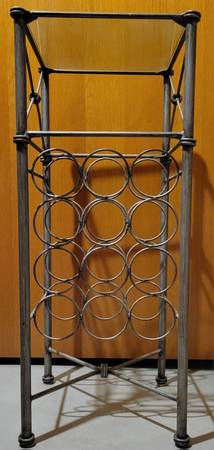 I'm selling a 12 bottle wine rack. It's made of metal and includes one glass shelf. The shelf can be placed in two different positions (as pictured). Or if you want to get creative, this could be...