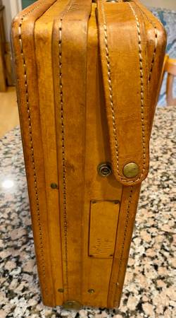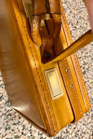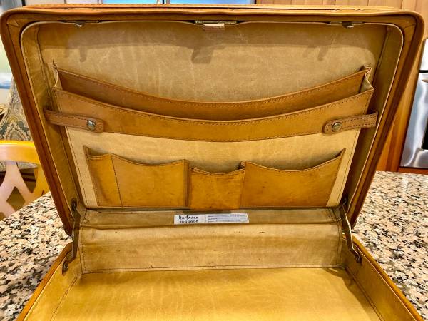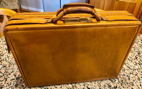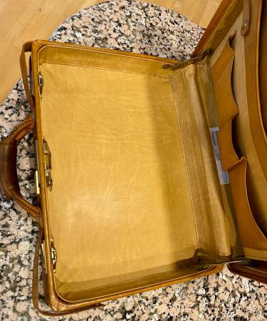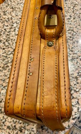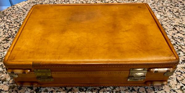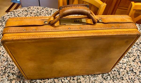Impressive Leather briefcase by Hartmann in superb condition. Inner storage pockets, brass fittings and functional combination lock. Will fit most laptops inside. Well over $500 when new, now $199! a great deal at over 60% off. Makes a wonderful gift!