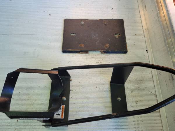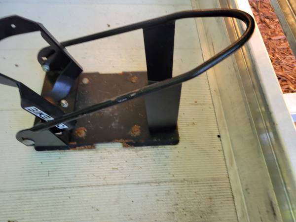 Bike Pro chock with mount. Mount plate bolts to trailer. Chock slides in and out. Just tighten or loosen two nuts. Makes trailer readily available for other jobs.