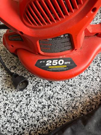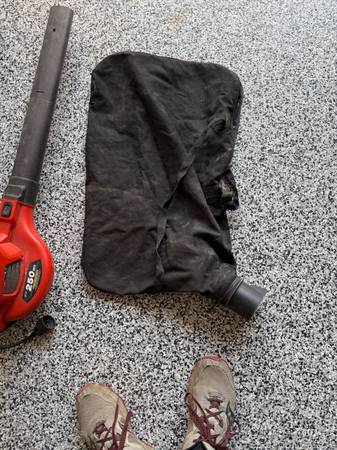 Selling my BLACK+DECKER 250 mph electric backpack blower/mulcher/vac. Works great with strong suction and airflow. Mulcher function runs smooth, and the collection bag is in excellent shape with no holes.