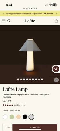 Purchased new for $275+tax directly from Loftie. Recommended by New York Times Wirecutter. Selling only because we rarely use it. Shade color is silver. Comes with original box and inserts. Requires...