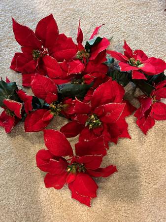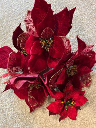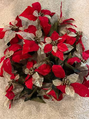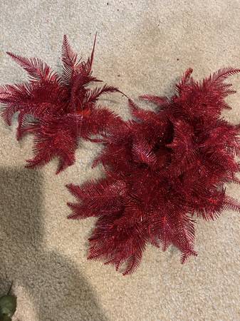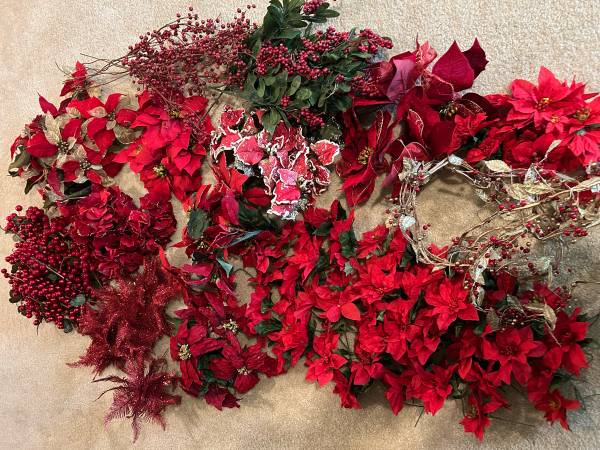 Christmas Decor 100+ Piece Lot Red Stems Leafs Flowers Poinsettia Garland Glitte - $45 (Saint Bonifacius)