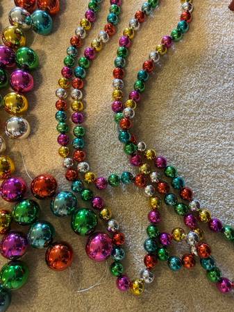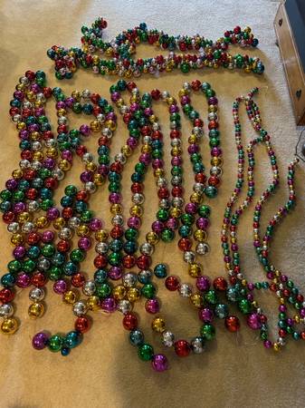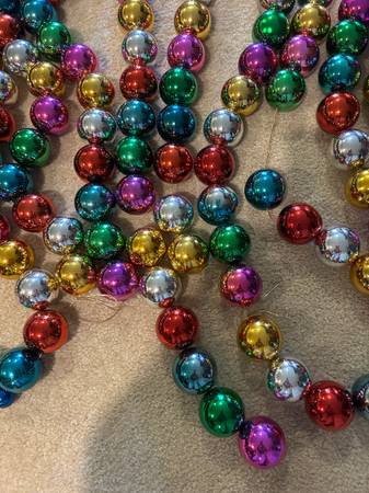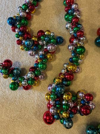 This multi-colored garland is the perfect garland for your Christmas tree! 2 strands (approximately 4 feet each) of clustered balls. 2 strands (approximately 9 feet each) of small colored balls. 6 strands (approximately 9 feet each) of larger colored balls.
