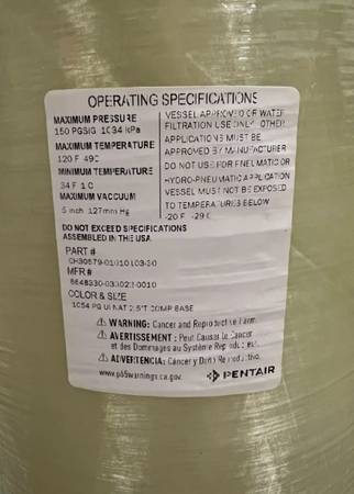 Pentair 10x54 Structural Poly Glass Vessel Tank w/Base Almond CH30579 Media tank for water softener system Price is per item, 3 available / they are selling at the current price, Please no offers if...