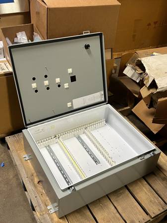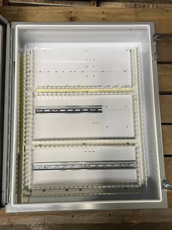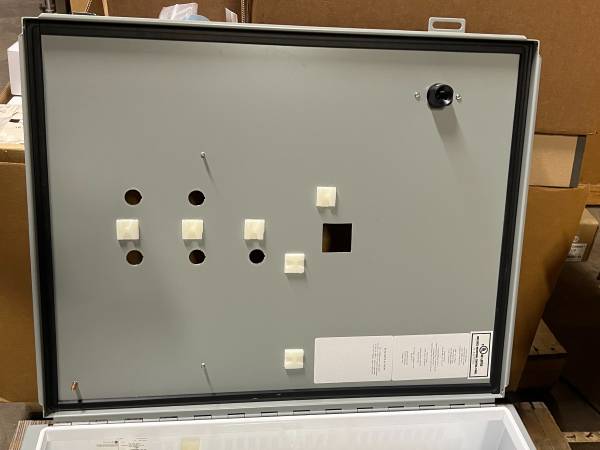 The enclosure was fully built but the project was scrapped. Never been installed, file holes and a square cutout on the door. No other cuts/holes. see pictures for condition description.