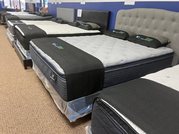 Brand names include BeautyRest, Simmons, Serta, Solstice Sleep, Sapphire Sleep and more