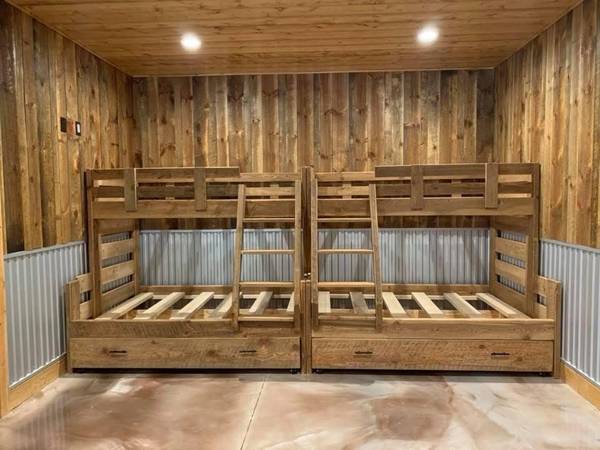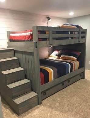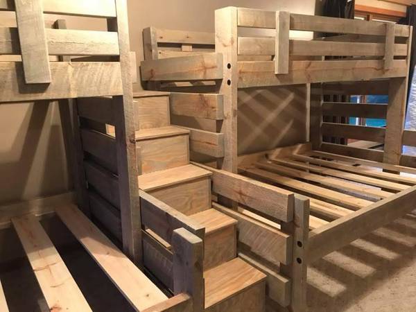 Storage drawers, trundle bed, stairs, shelves, desk, drawer fronts, stained finish, ladders, dressers, delivery and set up are all available options for additional cost.