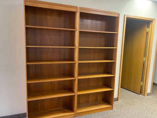 2 Nice Wood Bookshelves Moving Sale 36” wide x 12” deep x 84” high Great shape Adjustable shelves $50 each
