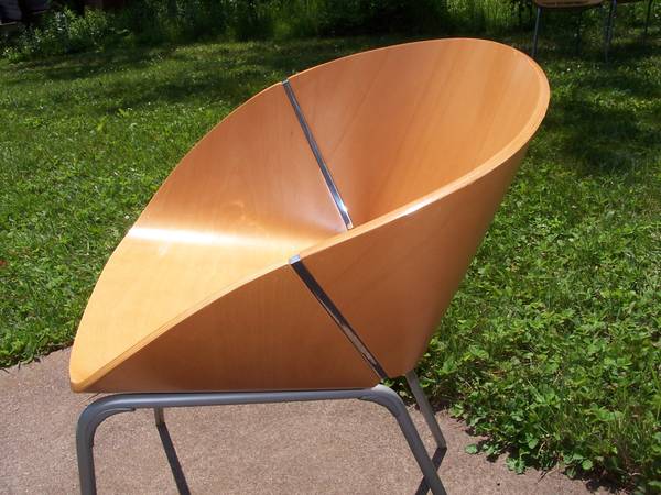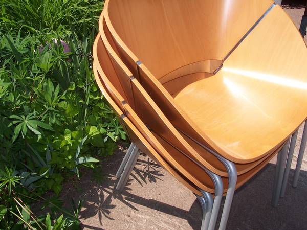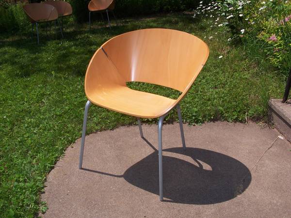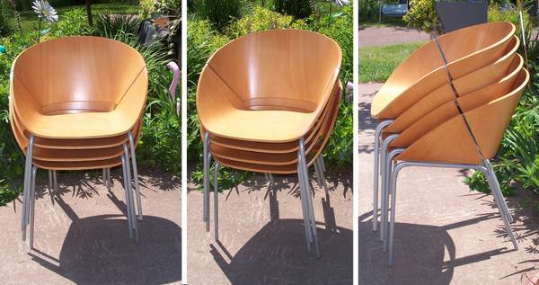 Statement chairs have the best of Mid-Century Modern and Danish Modern bentwood looks, while being made in the early 2000s. These chairs were made to be used or stacked and tucked away for extra seating.