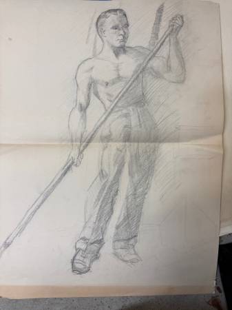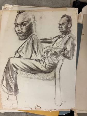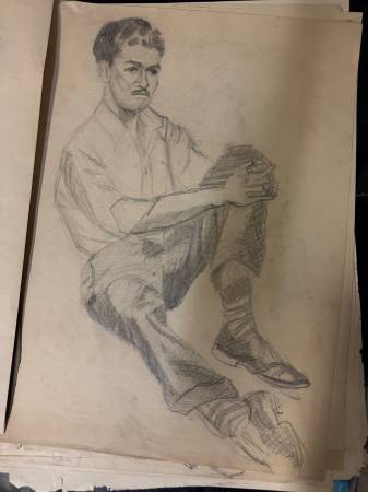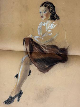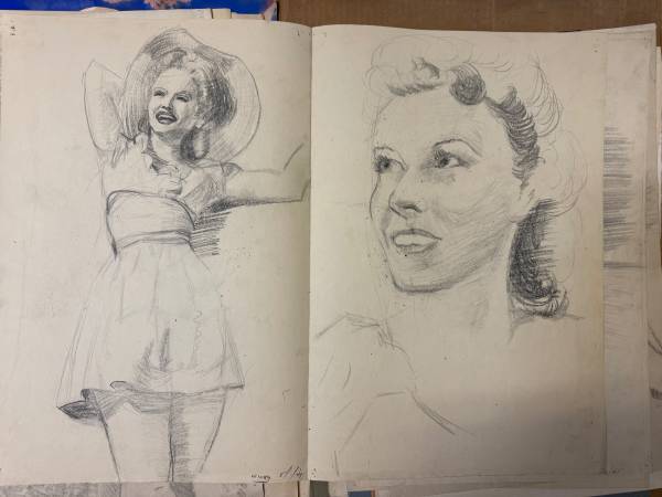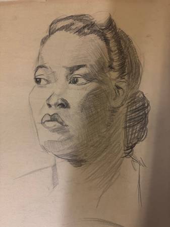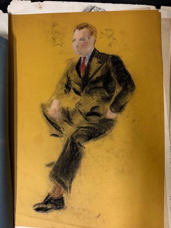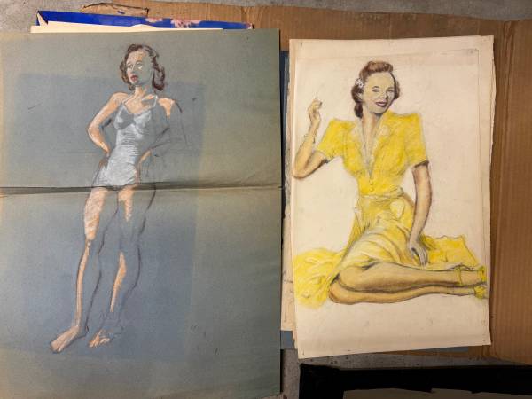 I haven’t counted them all, but over 60 original sketches from the early 1940’s. Mostly portraits, with many in color. Most are approximately 24”x18” in size, but smaller sizes are there as well. Most are dated 1941. See photos for examples of the work. Great examples of vintage fashion and styles.