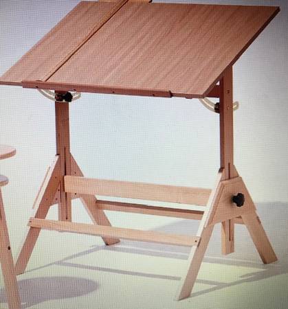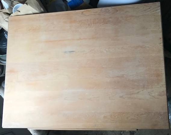 All Wood Drafting Table, Artist Drawing Desk, Writing Desk, Studio Desk, Art Craft Table with Adjustable Height and Tabletop Angle for Drafting, Artwork, Graphic Design, etc. Table top dimensions: 31.5" x 43" Table top is smooth, no marks, stains or scratches.
