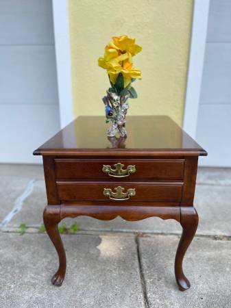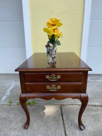 Beautiful High End Side/End Table by Hammary. It is clean and smoke free. The drawer opens and closes smoothly with dovetail joints. Very light scratches on the top from age and use. Cash only. It...