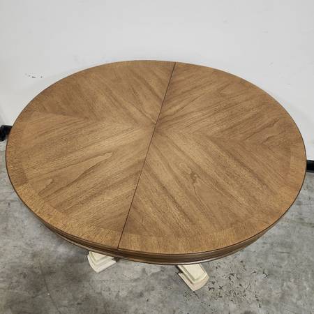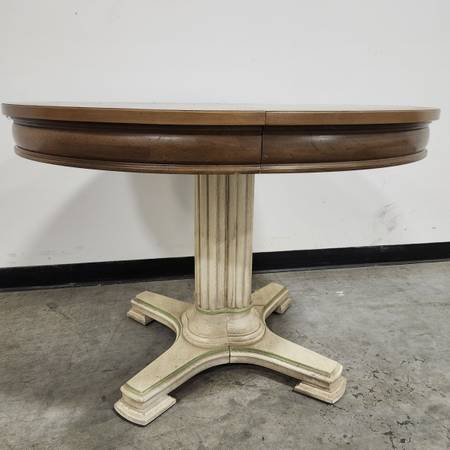 Vintage mid-century Italian bistro style solid wood dining table with two leaves. 29.75" tall, 38" wide, and 42" long without leaves. Each leaf adds 18".