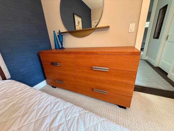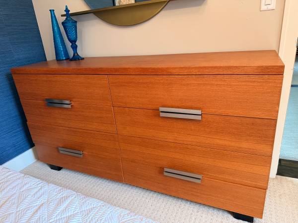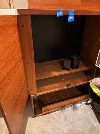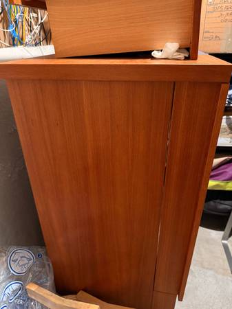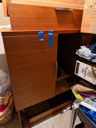 Beautiful custom teak armoire and dresser for sale. Asking $600 for both pieces. We paid much more than this. They can be bought separately of course but they do work nicely as a set. In one of our moves the legs of each piece were broken but they’ve worked nicely for us on blocks. I’m not handy so I couldn’t fix the legs myself but many people could with ease I’m sure. The armoire pictures t great because it’s in a storage room right now, apologies for that.