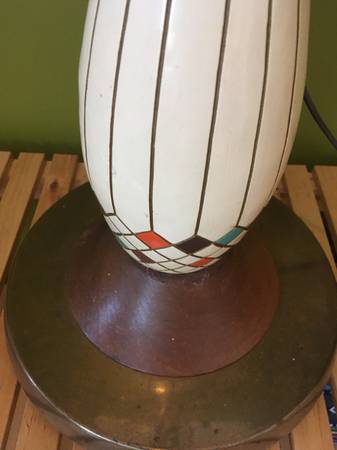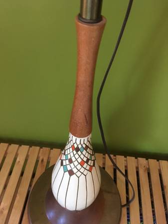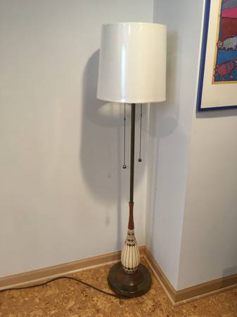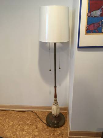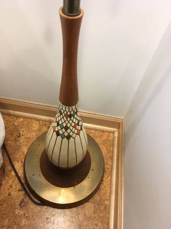 A beautiful original midcentury floor lamp. Metal , wood and ceramic Would be a great addition to your mid century modern furniture. Very nice quality In good functioning condition Lovescooter